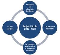 Les documents ci-dessous détaillent les axes et les objectifs du projet d'école validé début 2018 par Madame l'Inspectrice de l'éducation nationale.
